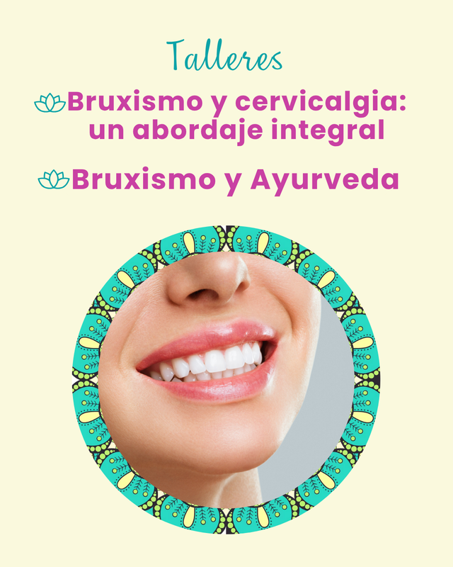 En este taller abordaremos esta afección por medio de diferentes técnicas como Yoga facial, automasaje, marmapuntura o digitopuntura, inhibición de puntos gatillo, liberación miofacial, recomendaciones desde el Ayurveda y la BioRecodificación. Buscaremos resumir algunas nociones de lo que este síntoma nos quiere decir y que herramientas teóricas y practicas tenemos para apalear los efectos del bruxismo.
