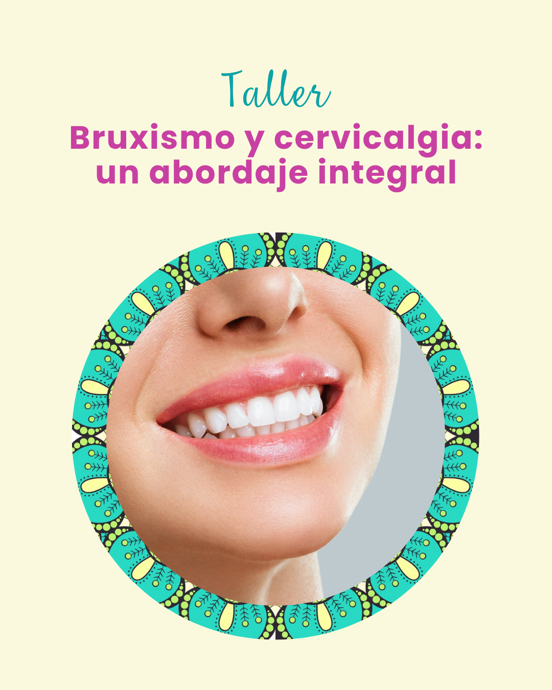 Este taller está orientado a facilitar herramientas teóricas y prácticas para aliviar las tensiones que provoca el bruxismo y entenderás cómo repercute el mismo en el dolor cervical (cervicalgia)